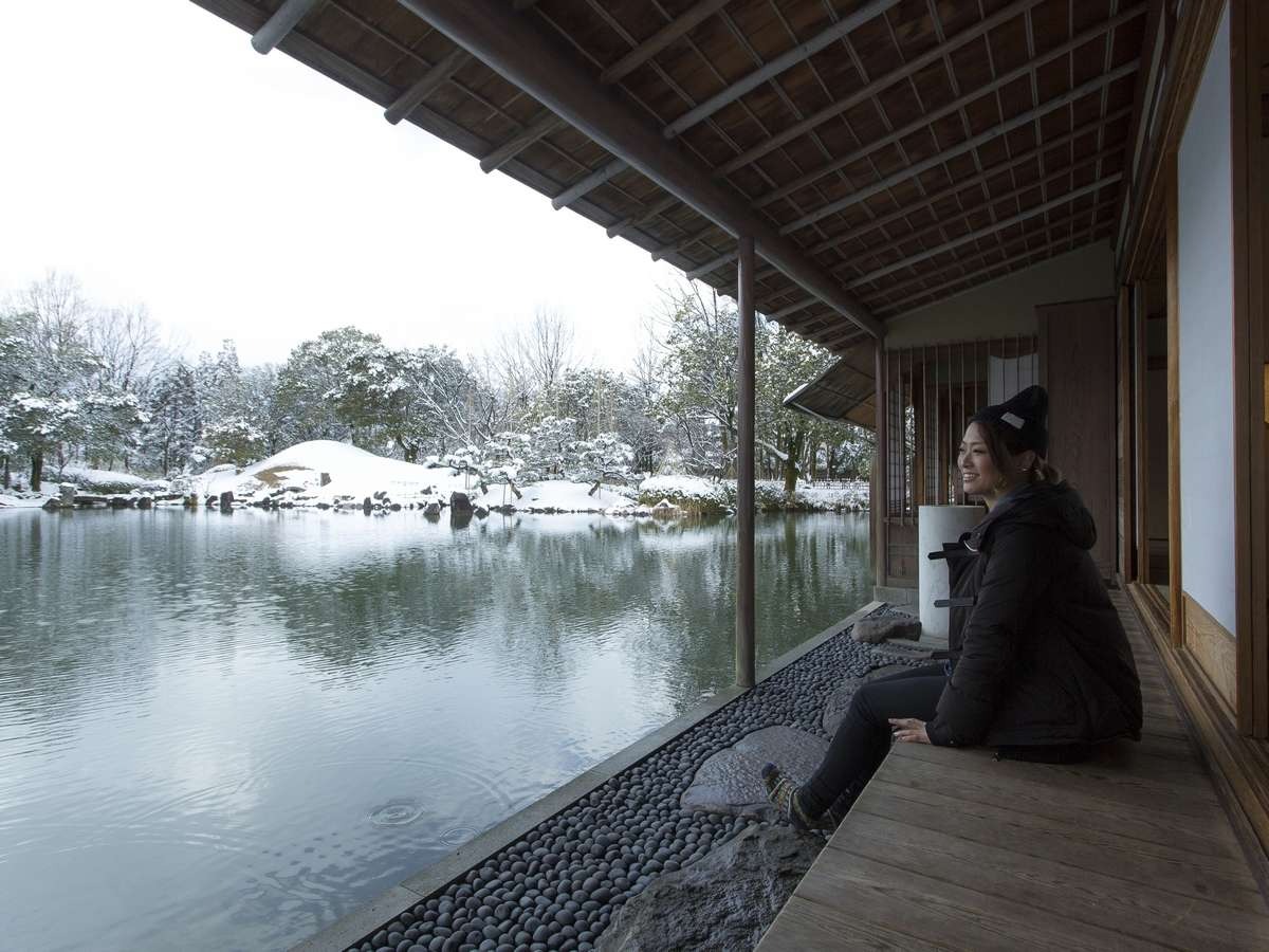 冬になると、園内は雪化粧をし、静かで趣のある雪景色を楽しめます。